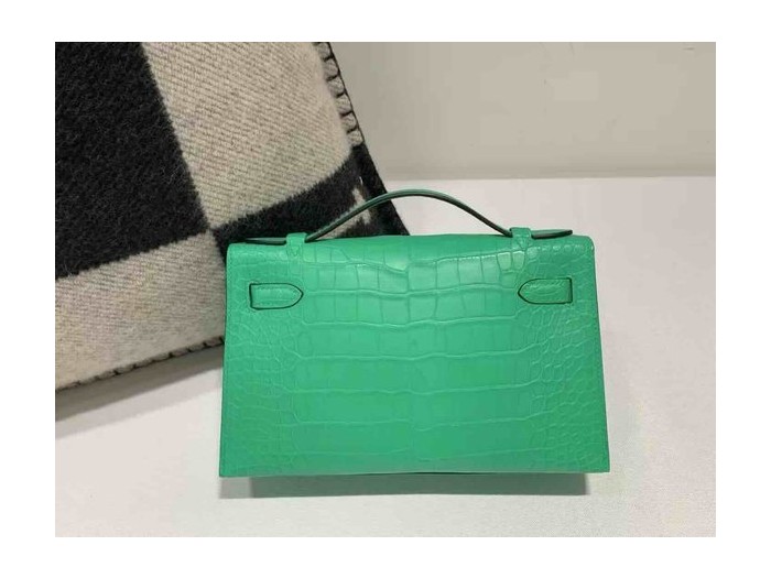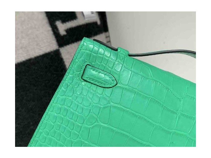 • Hermès Kelly Pochette Matte Alligator Vert Jade Palladium Hardware