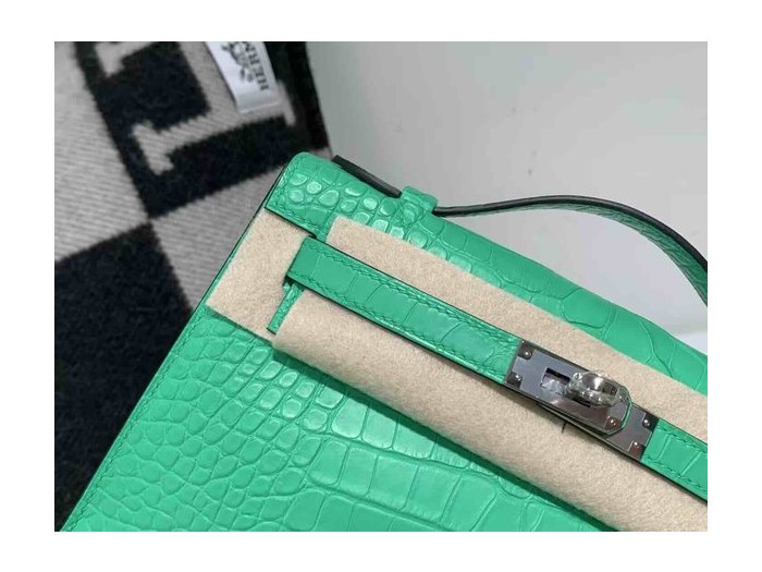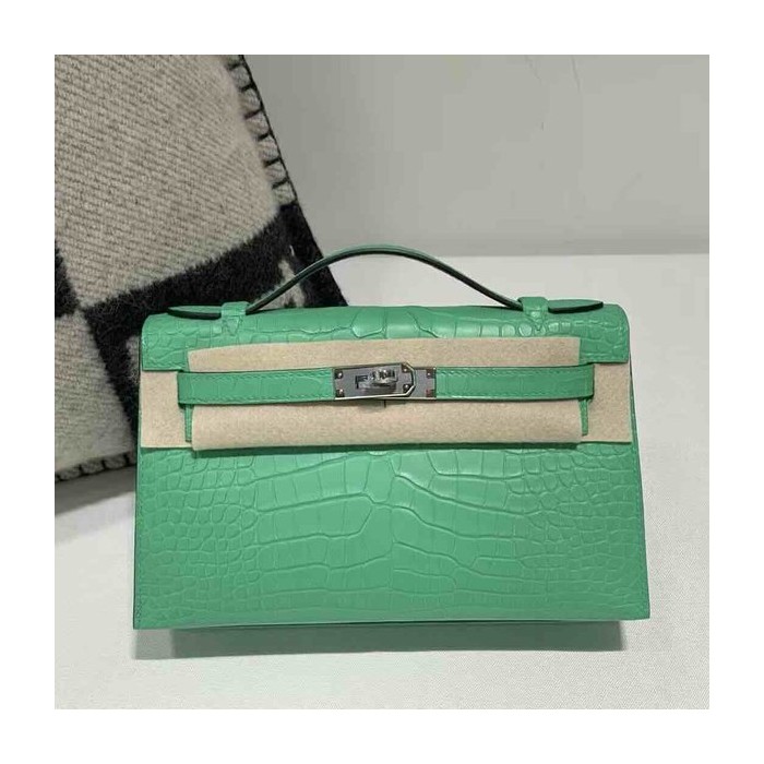 Hermès Kelly Pochette Matte Alligator Vert Jade Palladium Hardware > Pochette