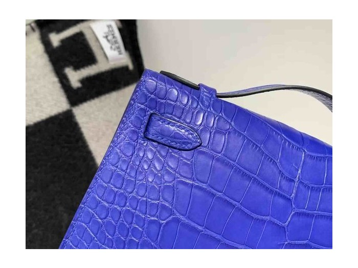 Hermès Kelly Pochette Matte Alligator Bleu Electrique Palladium Hardware