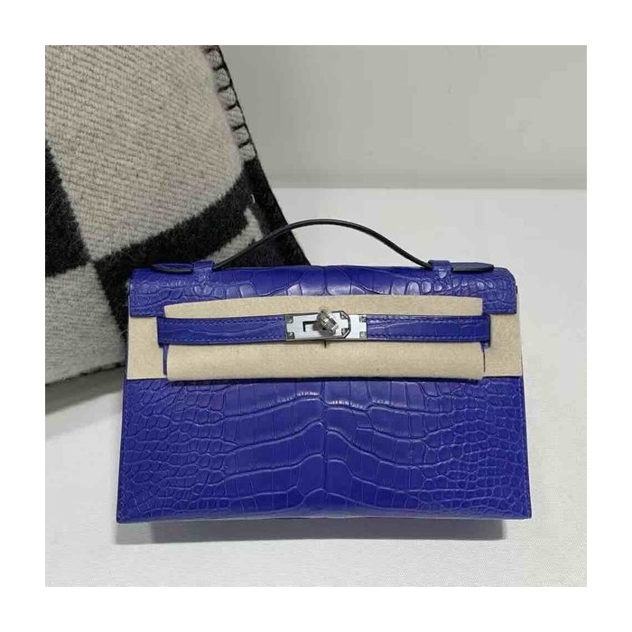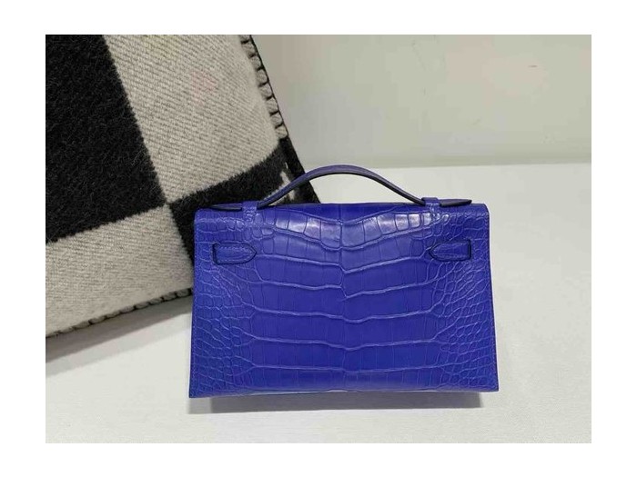 Hermès Kelly Pochette Matte Alligator Bleu Electrique Palladium Hardware > Pochette