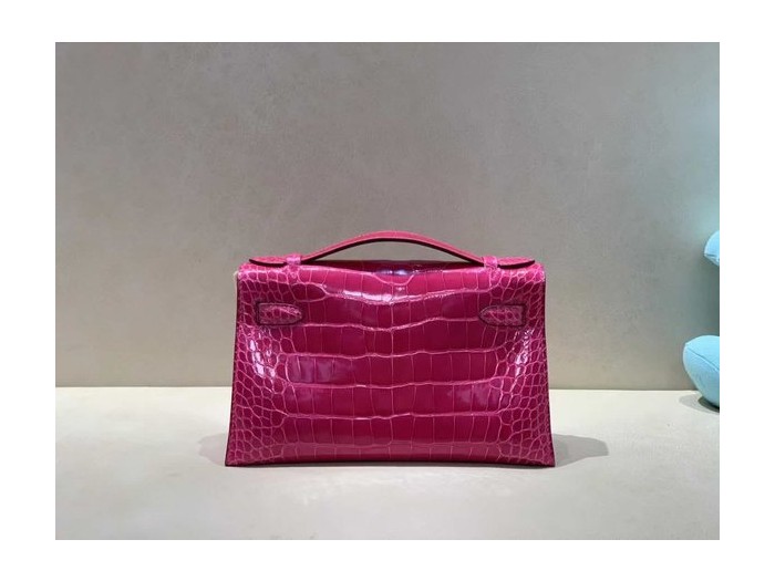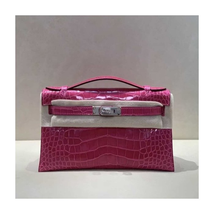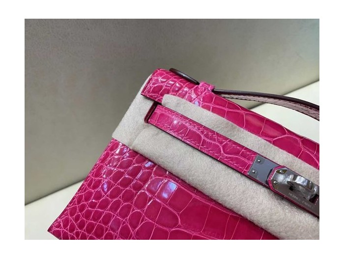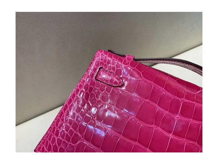 Hermès Kelly Pochette Fuchsia Shiny Alligator Leather / Palladium Hardware