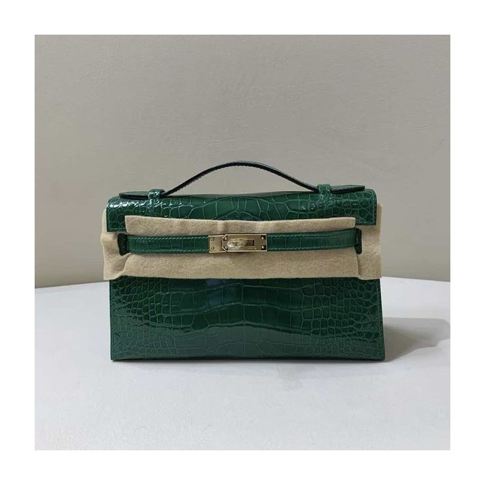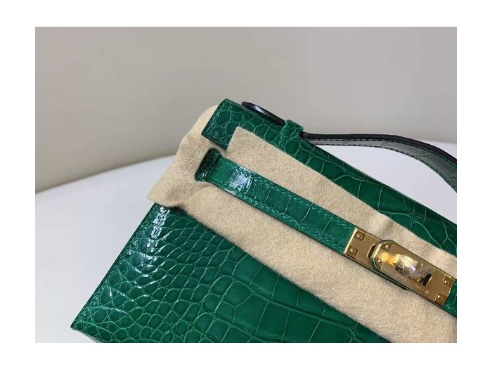 Hermès Kelly Pochette Shiny Alligator Vert Veronese GHW