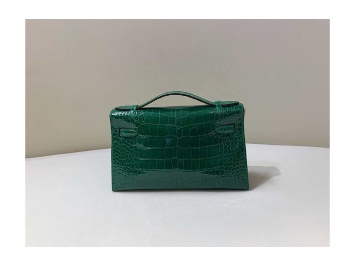 • Hermès Kelly Pochette Shiny Alligator Vert Veronese GHW
