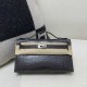 Hermès Kelly Pochette Shiny Crocodile Graphite with Silver Hardware