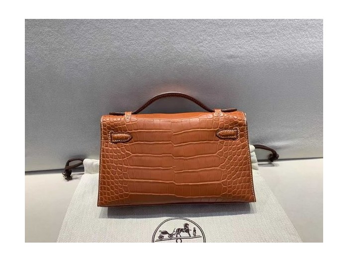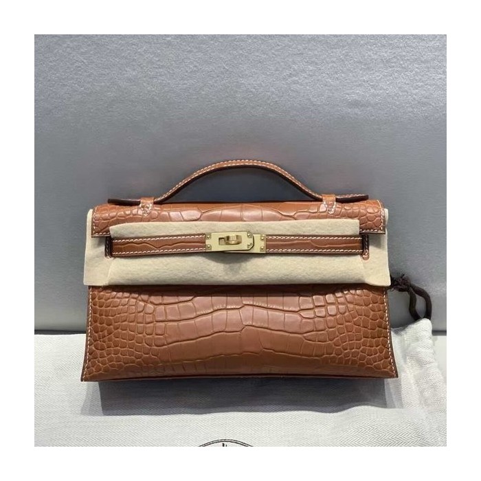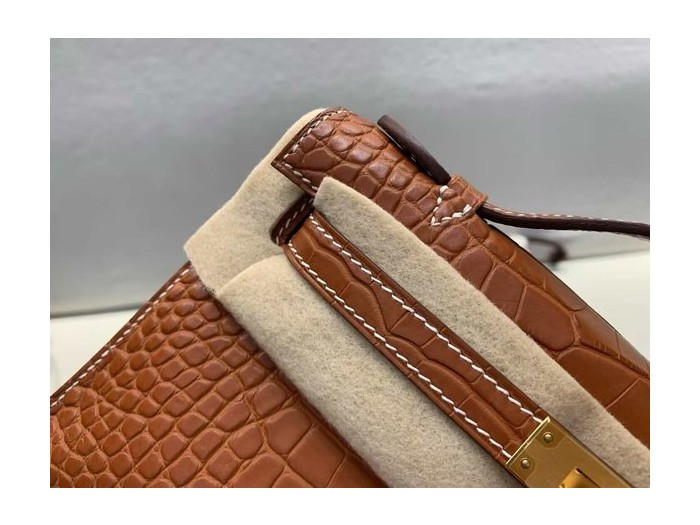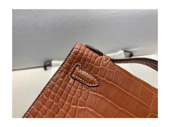 Hermès Kelly Pochette Matte Alligator Gold with Gold Hardware > Pochette