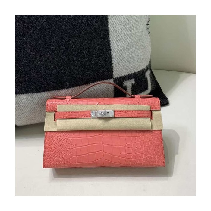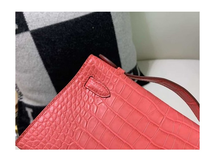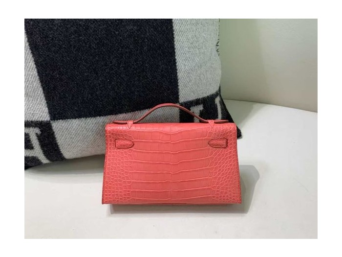 Hermès Pochette Crocodile Porosus Rouge H with Palladium Hardware