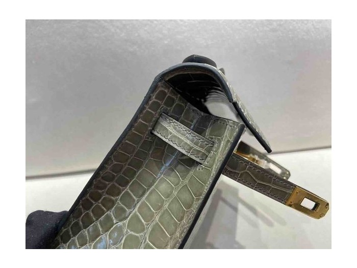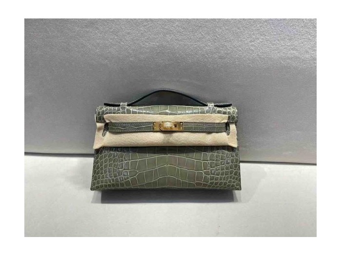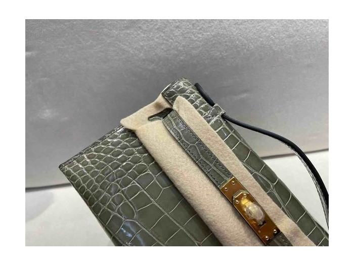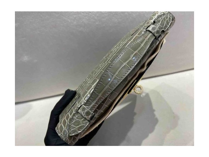 Hermès Pochette Shiny Alligator Gris Tourterelle x Gold Hardware > Pochette