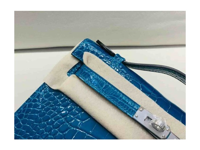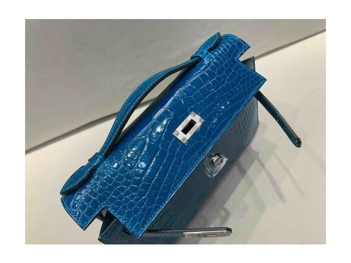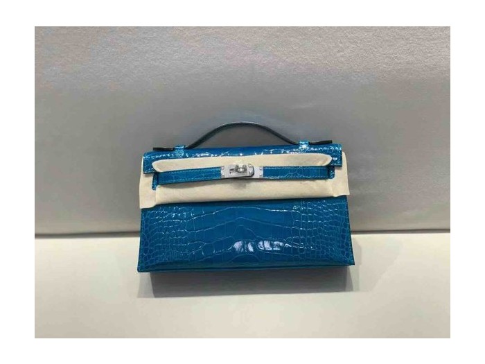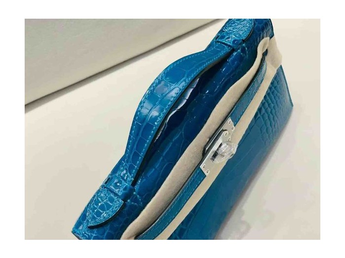Hermès Pochette Shiny Alligator Izmir Blue x Palladium Hardware