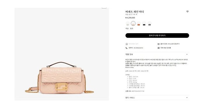 • 펜디 바게트 체인 미디 페일 핑크 [매장가 420만원대]