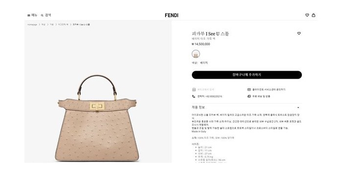 팬디 FENDI 피카부 I See U 스몰 베이지 타조가죽 백 [매장가 1450만원대]