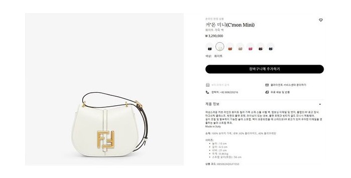 펜디 커’몬 미니 백 / 화이트 [매장가330만원대] > Fendi