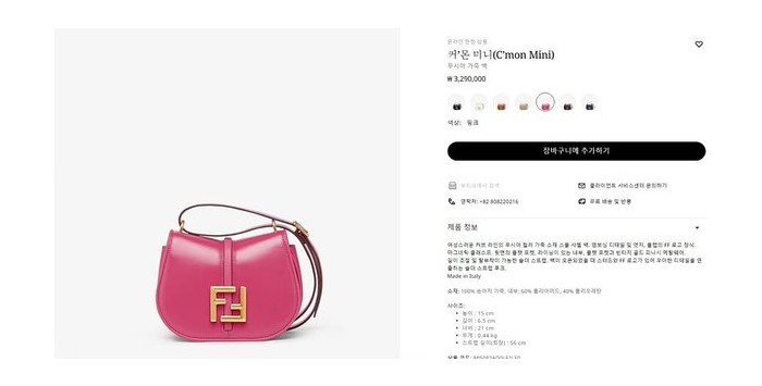 펜디 커’몬 미니 백 / 핑크 [매장가330만원대] > Fendi