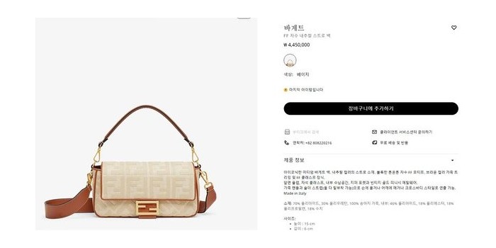 펜디 바게트 백 / 내츄럴베이지FF [매장가450만원대]