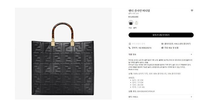 • 펜디 선샤인 미디엄 블랙 패턴 [매장가 440만원대]