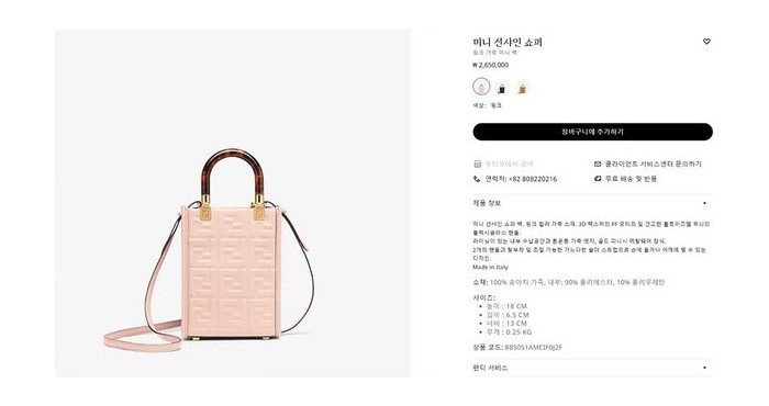 • 펜디 미니 선샤인 쇼퍼백 FF모티프 핑크 [매장가 260만원대]