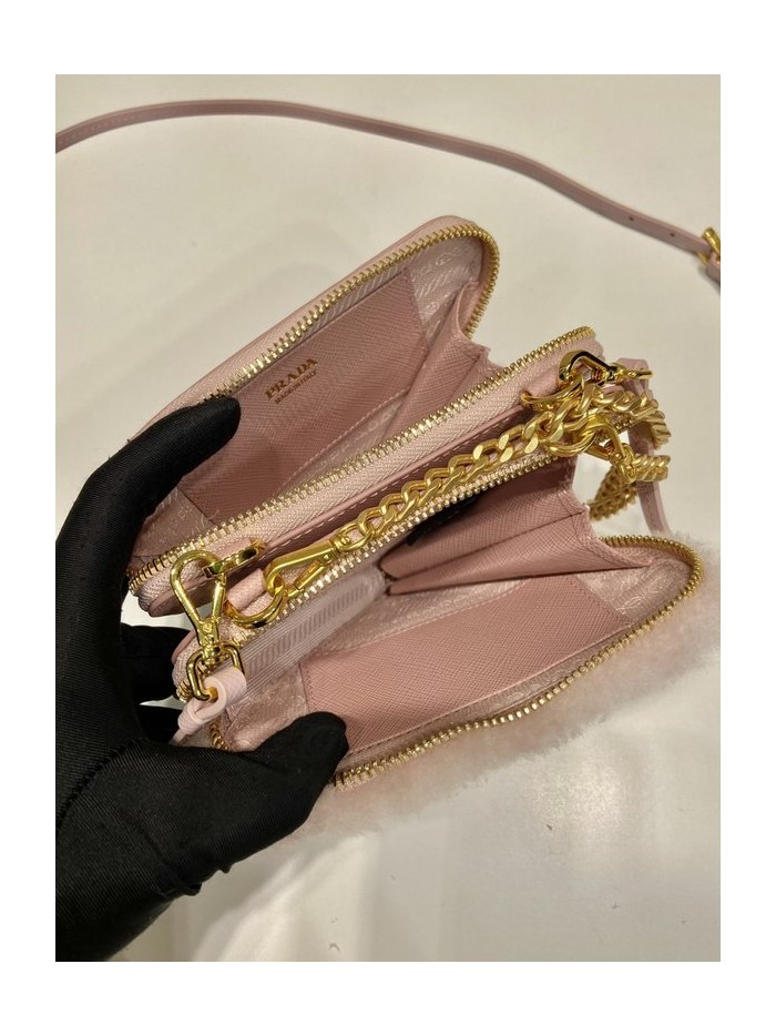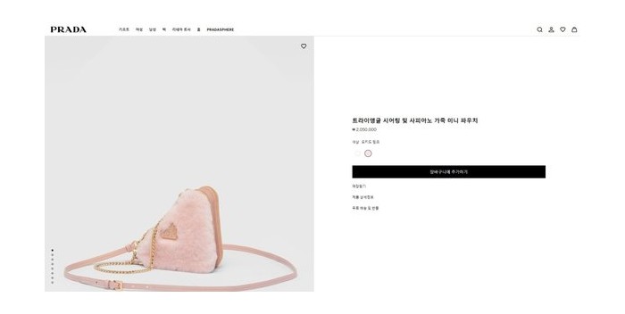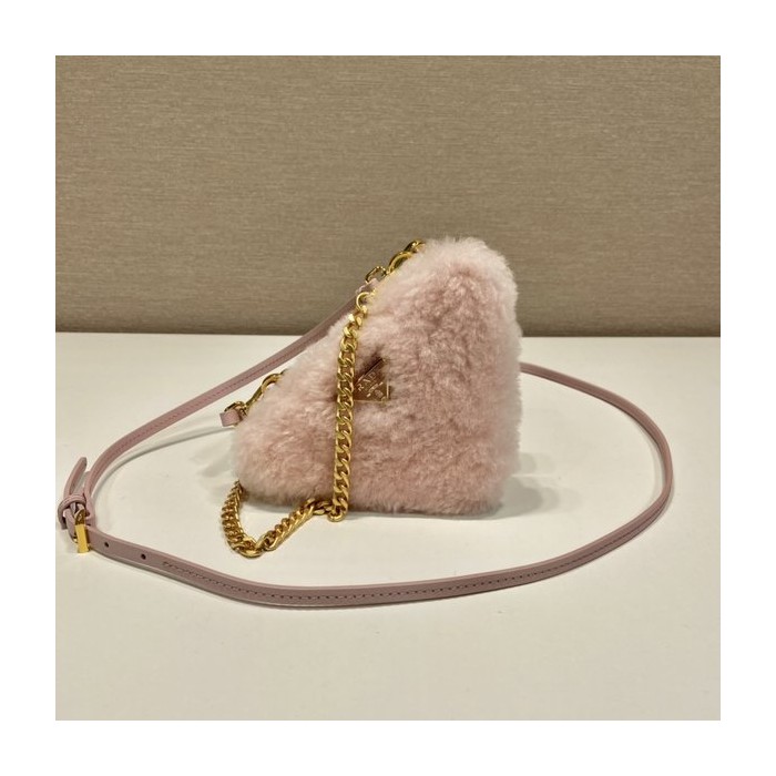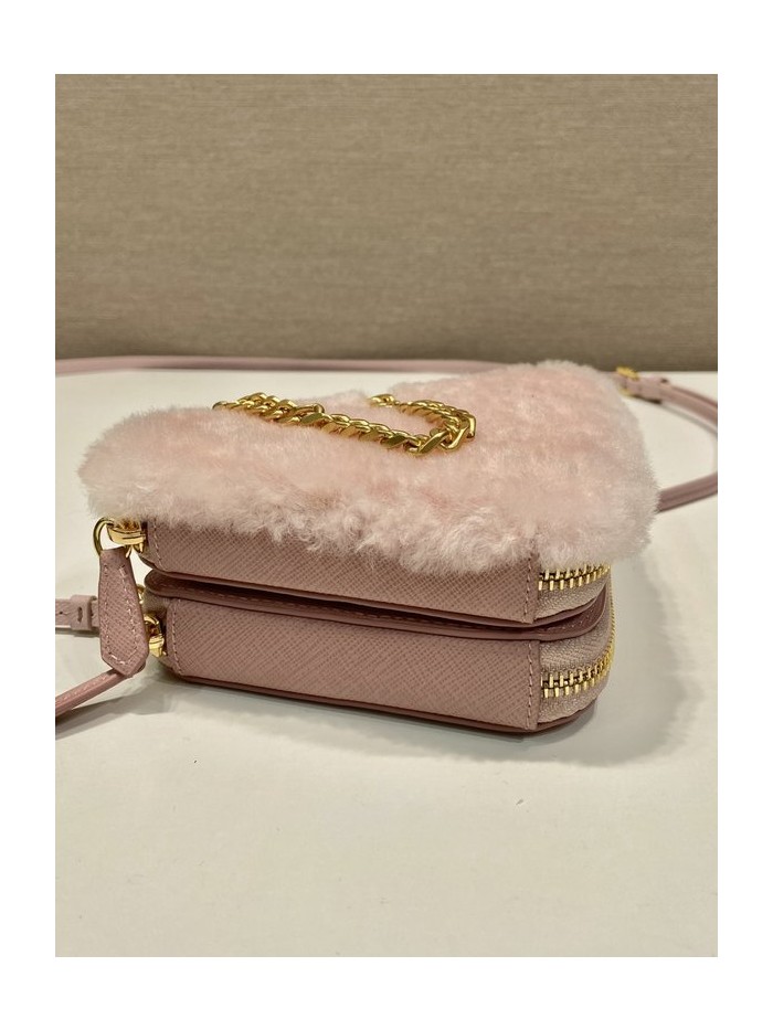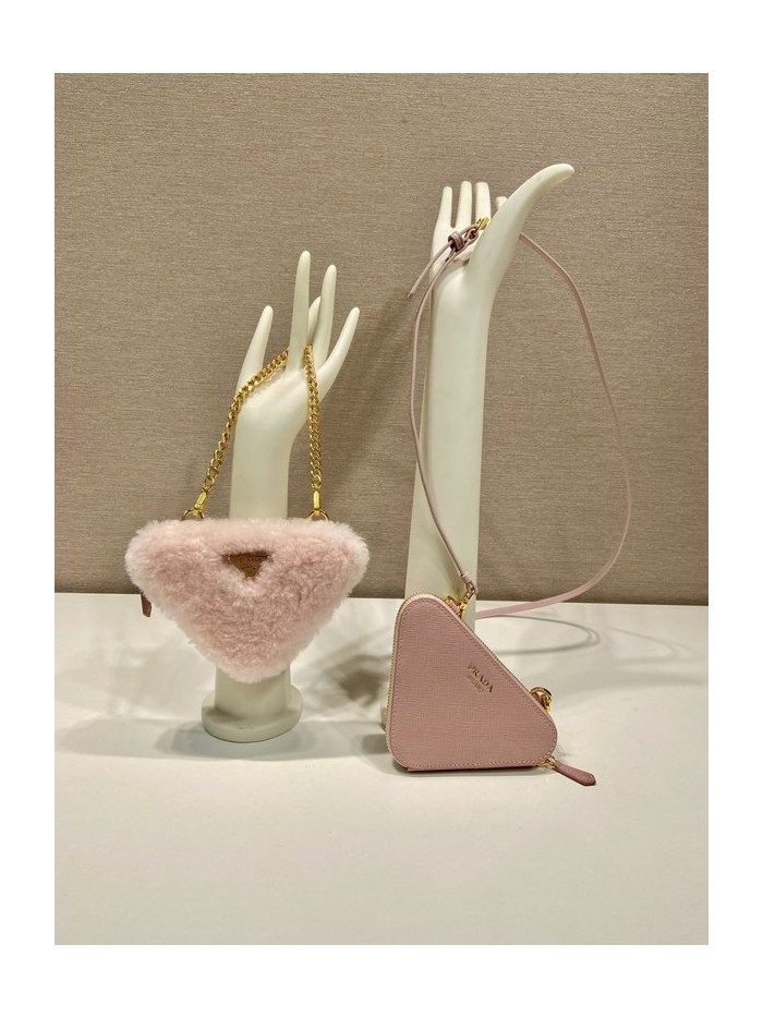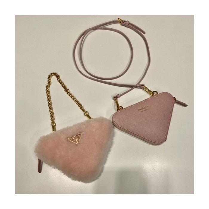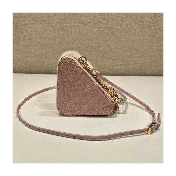 프라다 트라이앵글 시어링 및 사피아노 가죽 미니 파우치 [매장가 205만원대]