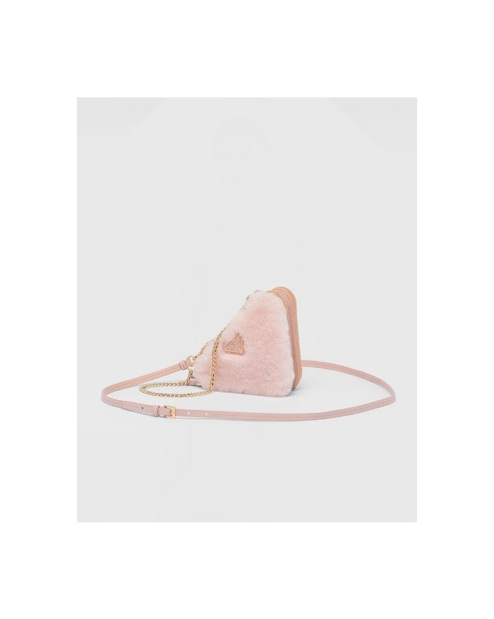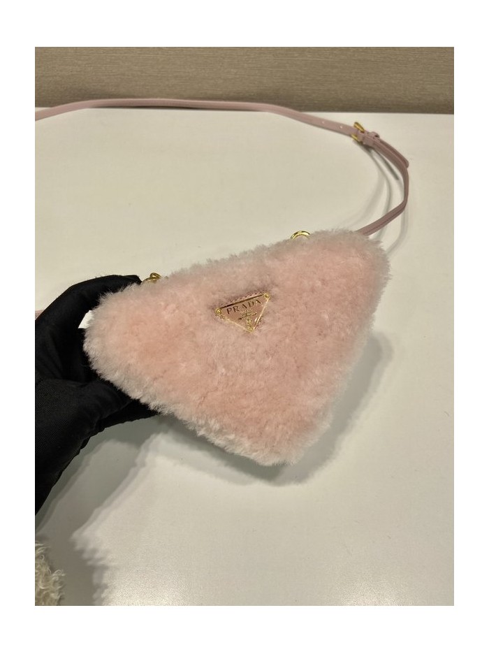 프라다 트라이앵글 시어링 및 사피아노 가죽 미니 파우치 [매장가 205만원대] > Prada