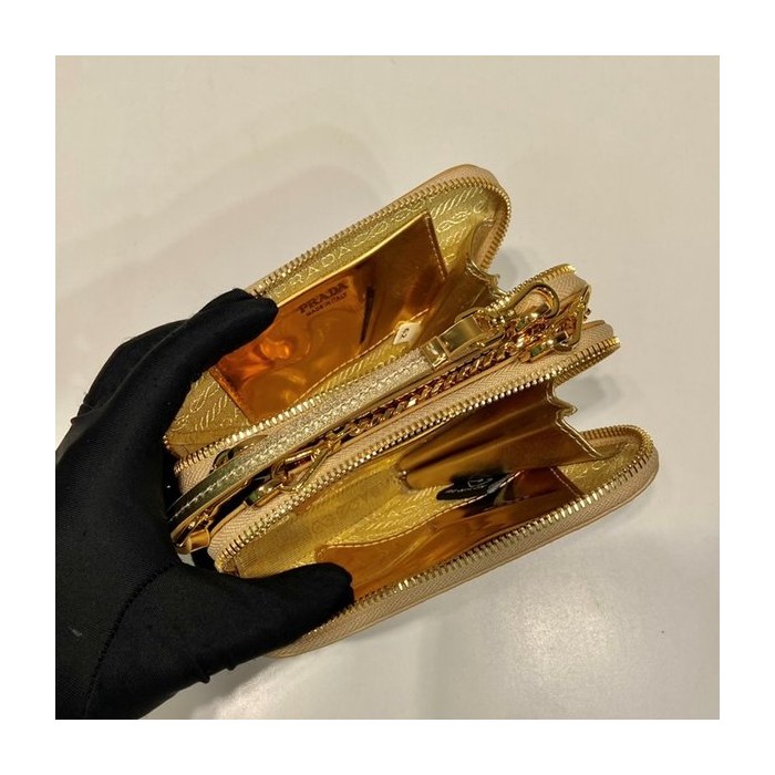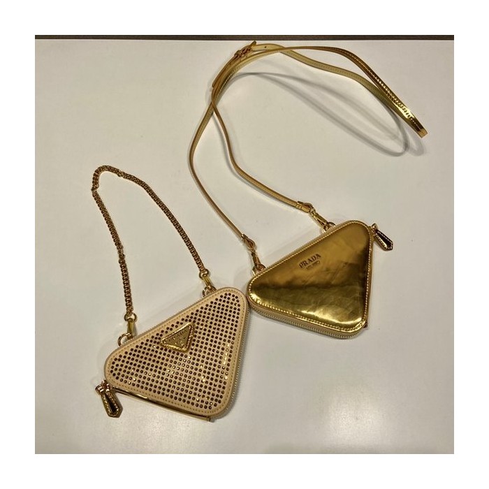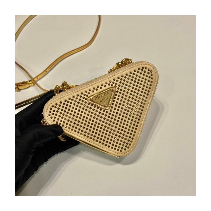프라다 트라이앵글 장식 새틴 및 가죽 미니 파우치 [매장가 260만원대]