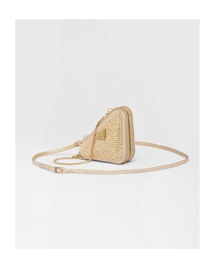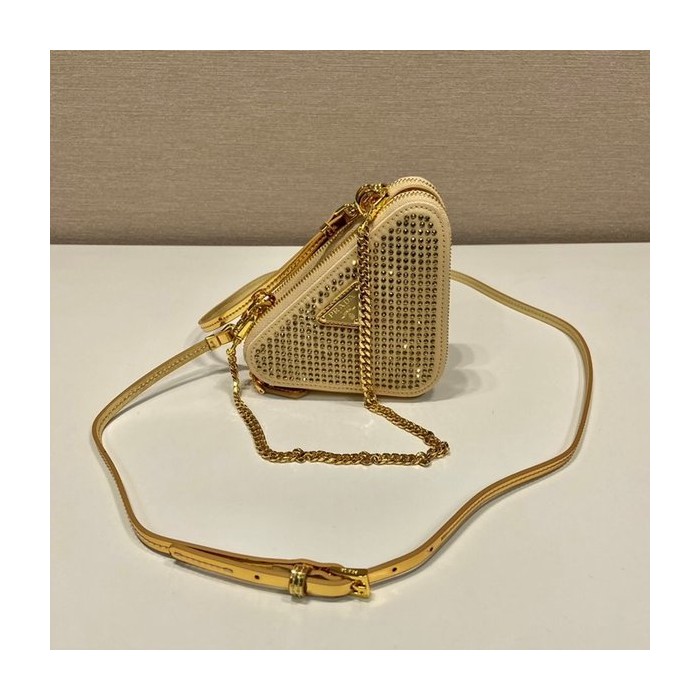 프라다 트라이앵글 장식 새틴 및 가죽 미니 파우치 [매장가 260만원대] > Prada