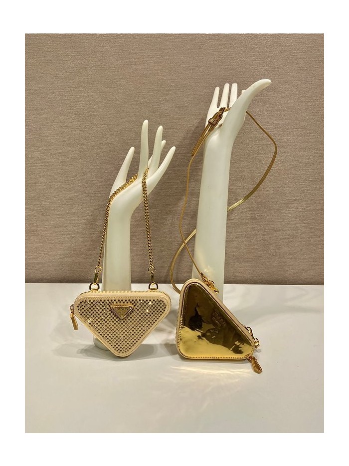 • 프라다 트라이앵글 장식 새틴 및 가죽 미니 파우치 [매장가 260만원대]