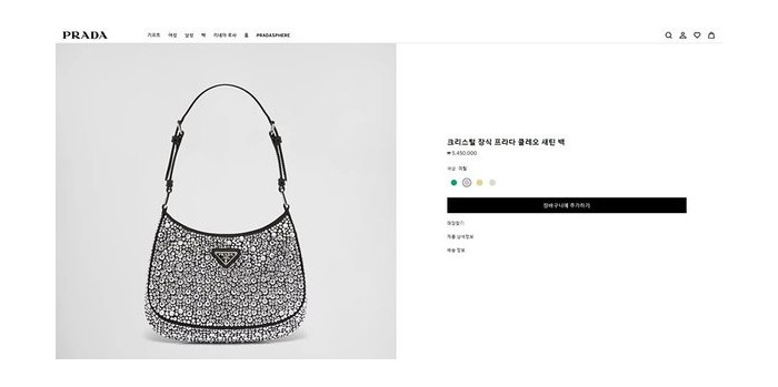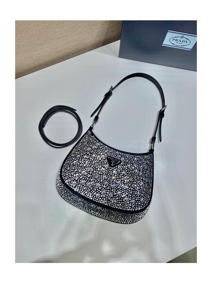 프라다 크리스탈 장식 클레오 새틴백 [매장가 545만원대] > Prada