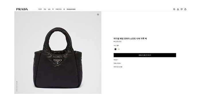 프라다 미디엄 패딩 소프트 나파 가죽백 [매장가 525만원대]