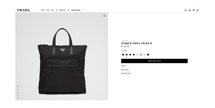 프라다 리나일론 및 사피아노 가죽 토트백 [매장가 345만원대]