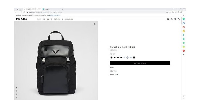 • 프라다 리나일론 및 브러쉬드 가죽 백팩 [매장가 345만원대]