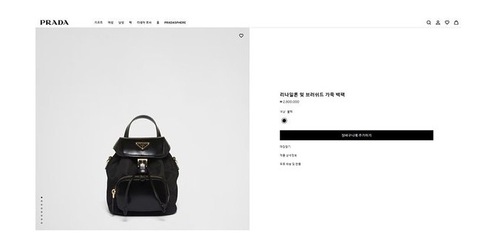 • 프라다 리나일론 및 브러쉬드 가죽 백팩 [매장가 270만원대]