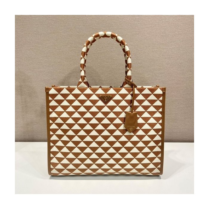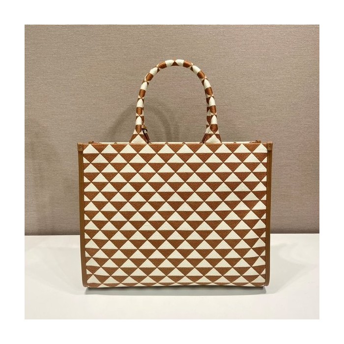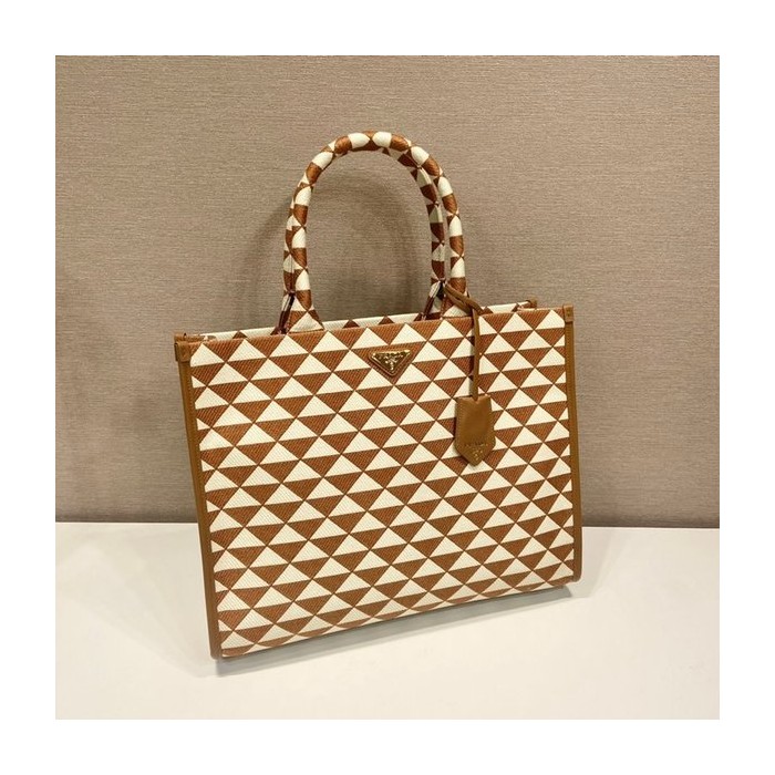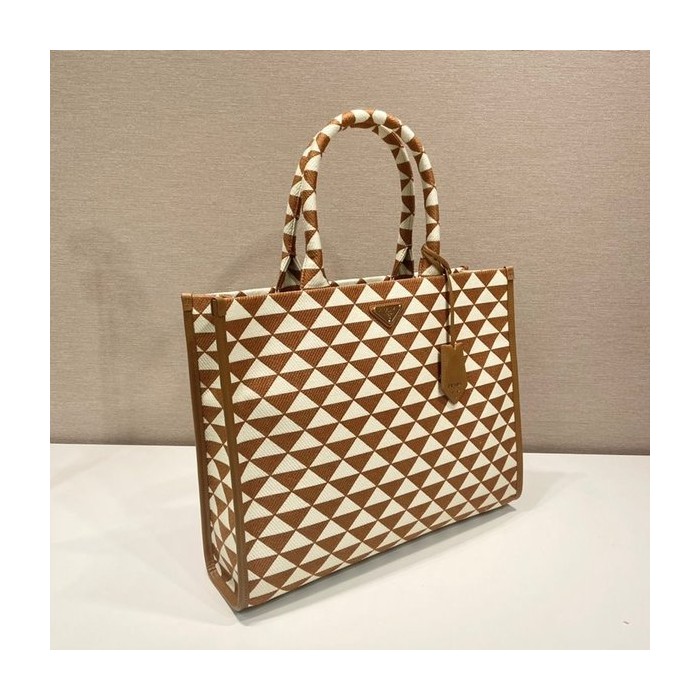 프라다 라지 심볼 자수 패브릭 핸드백 [매장가 450만원대]