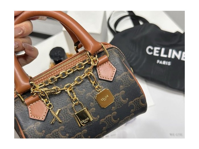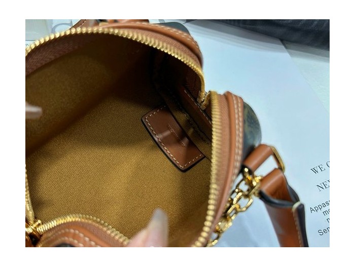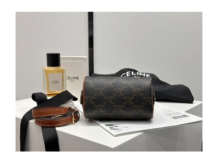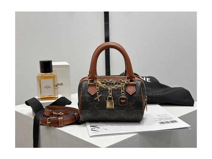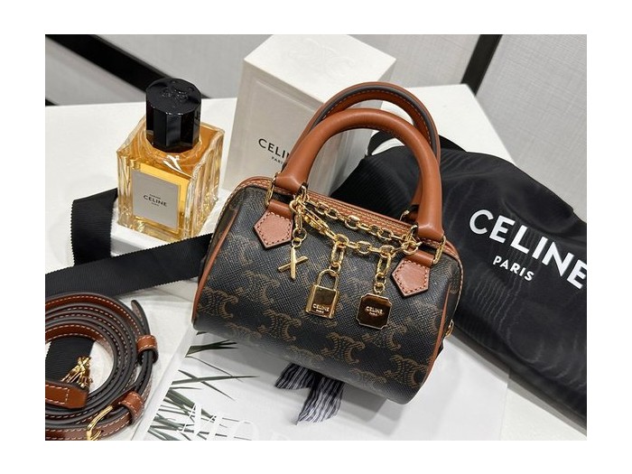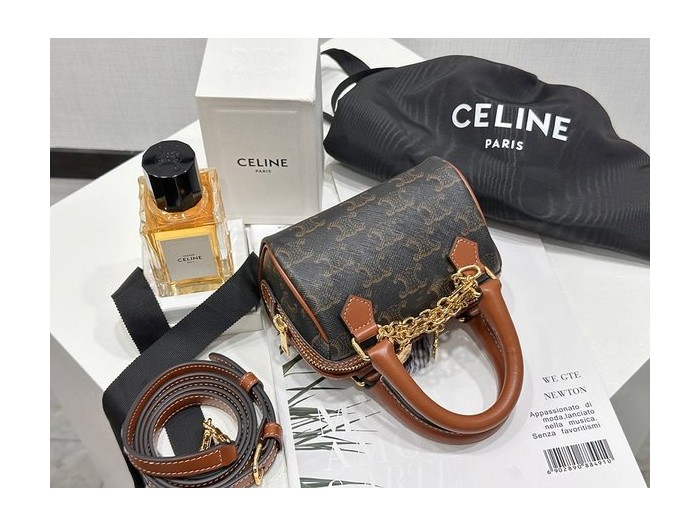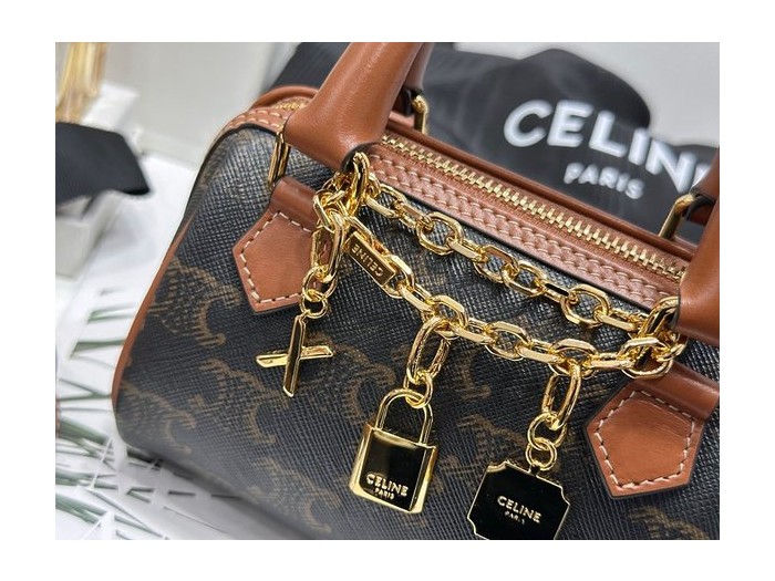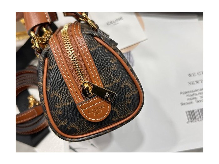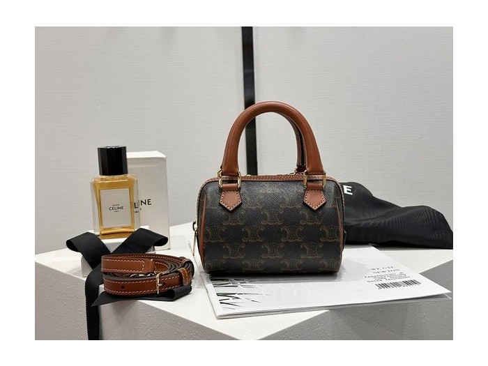셀린느 미니 보스턴백 트리옹프 캔버스 & 카프스킨 탠 [매장가 200만원대]