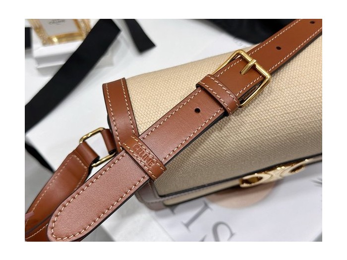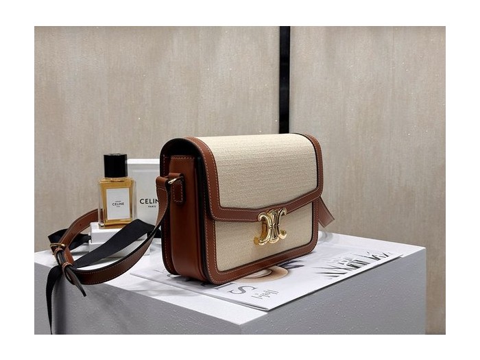 셀린느 클래식 트리옹프 백 텍스타일 & 카프스킨 내추럴 탠 [매장가 570만원대 > Celine