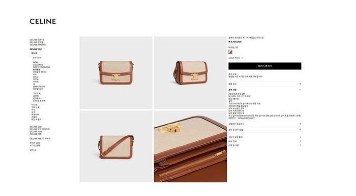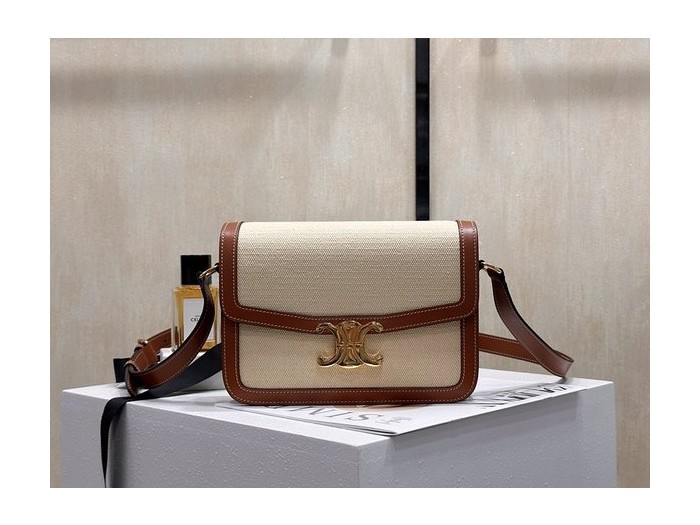셀린느 클래식 트리옹프 백 텍스타일 & 카프스킨 내추럴 탠 [매장가 570만원대