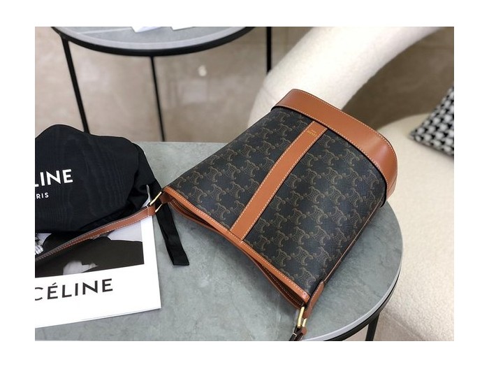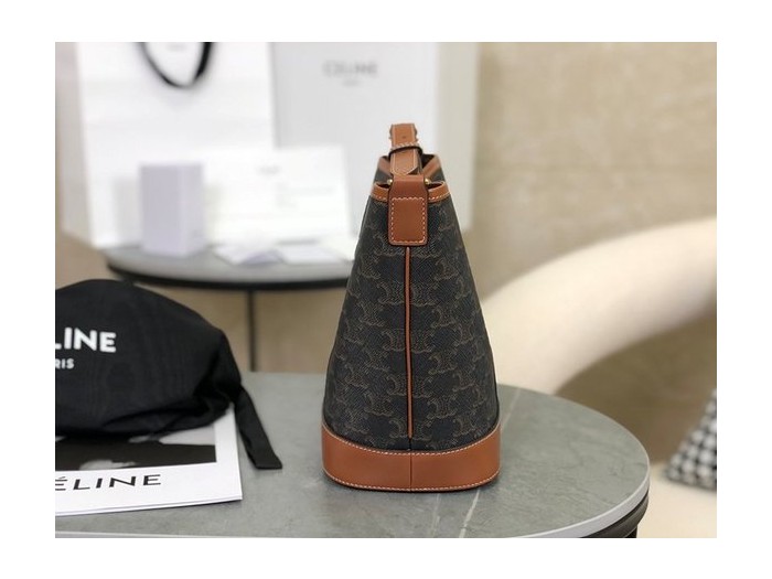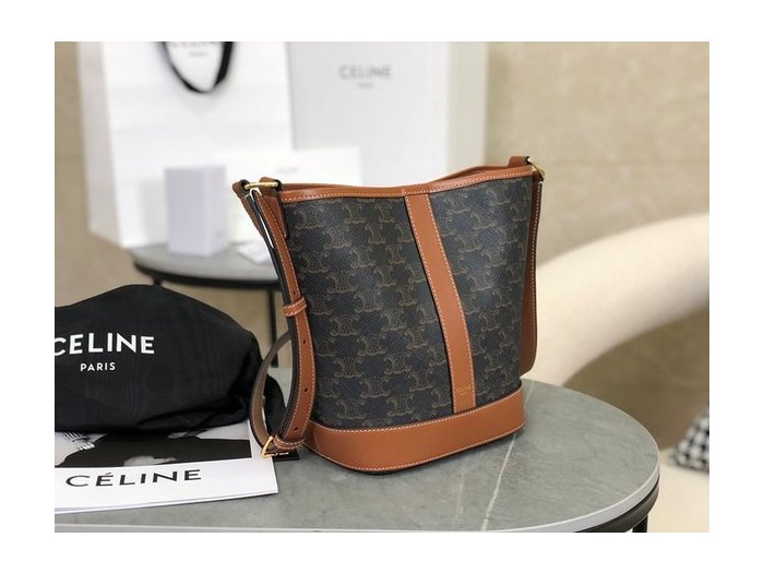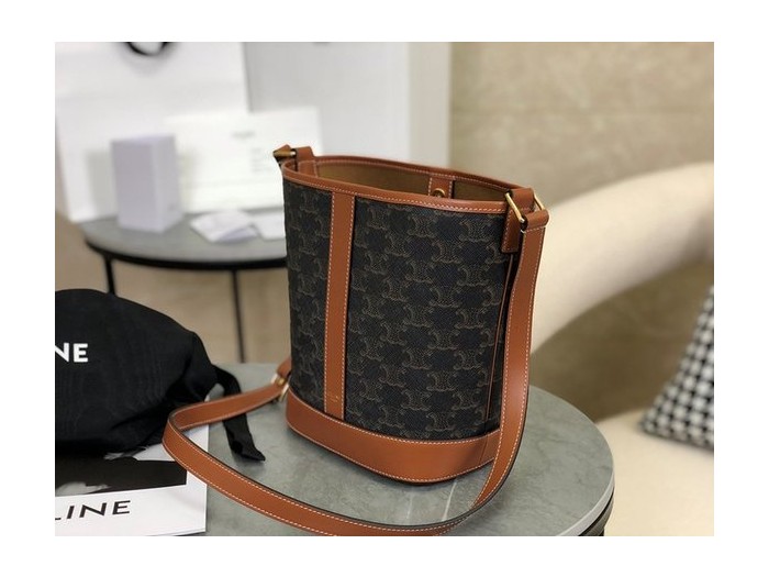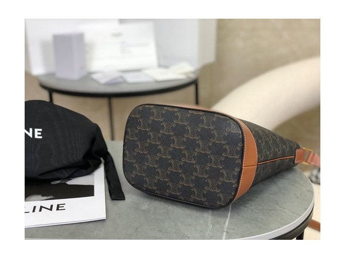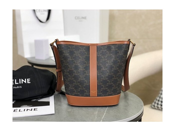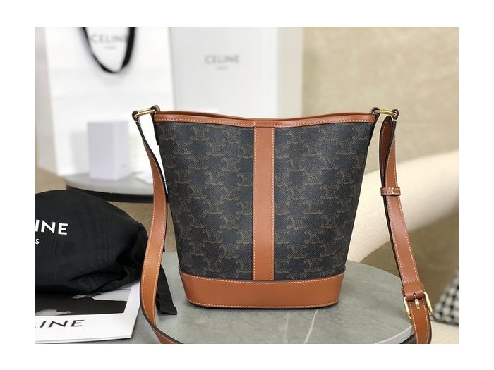 셀린느 스몰 버킷백 트리옹프 캔버스 & 카프스킨 탠 [매장가 240만원대]