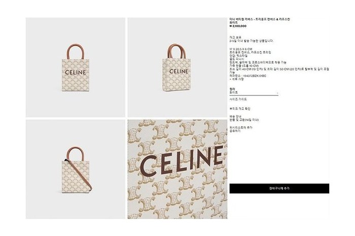 셀린느 미니 버티컬 카바스백 트리옹프 캔버스 & 카프스킨 내추럴 탠 [매장가 200만원대] > Celine