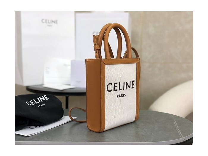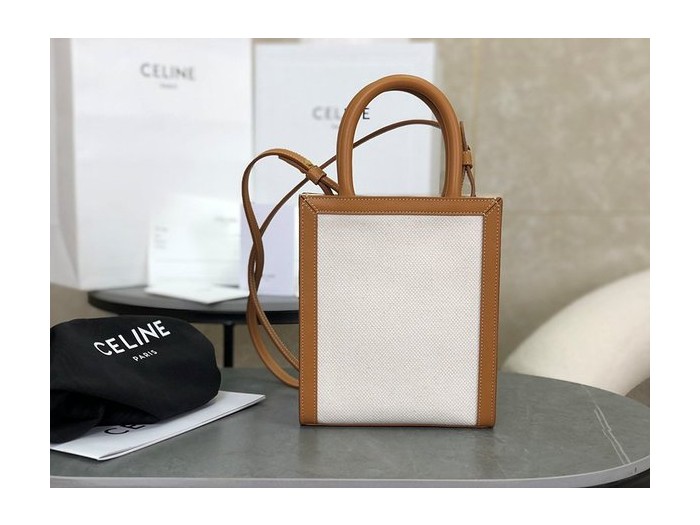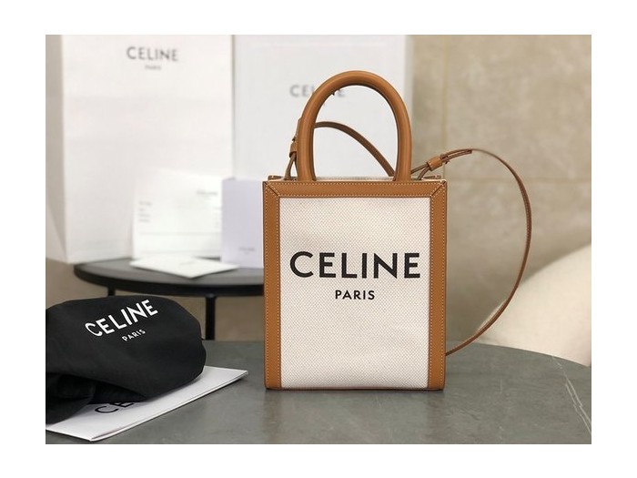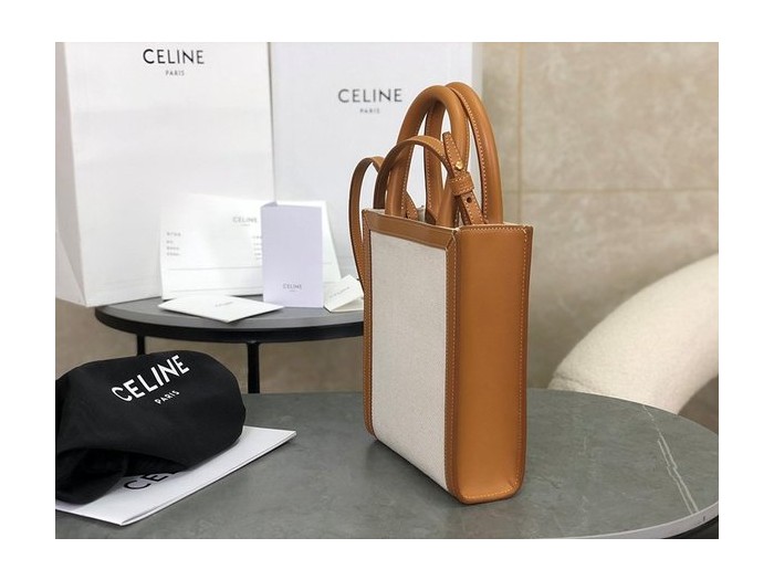 셀린느 미니 버티컬 카바스백 트리옹프 캔버스 & 카프스킨 내추럴 탠 [매장가 200만원대]