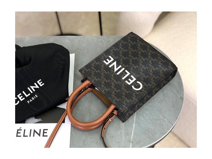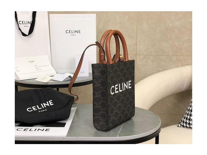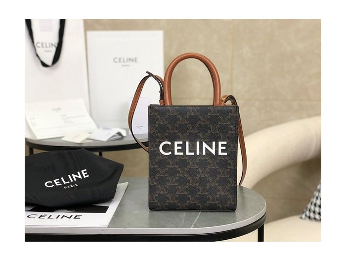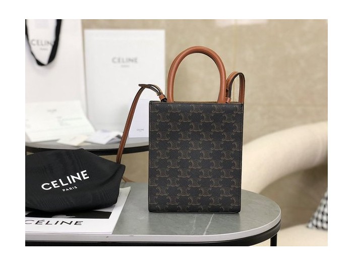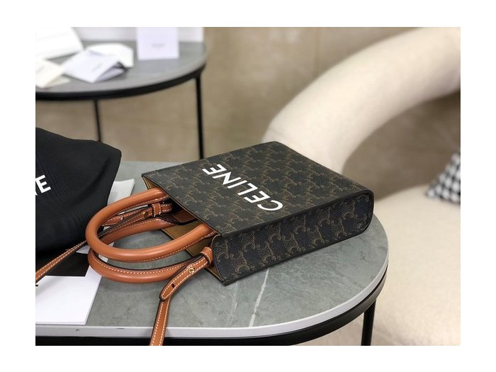 셀린느 미니 버티컬 카바스백 트리옹프 캔버스 & 카프스킨 탠 [매장가 200만원대] > Celine