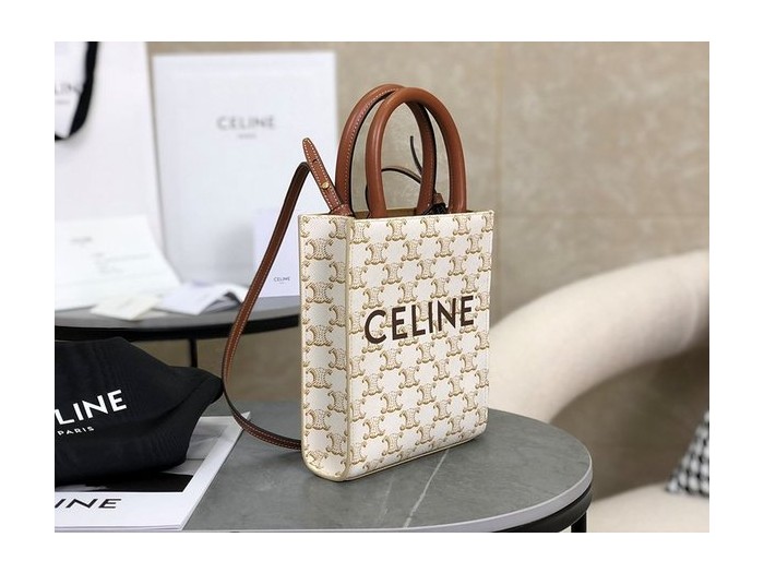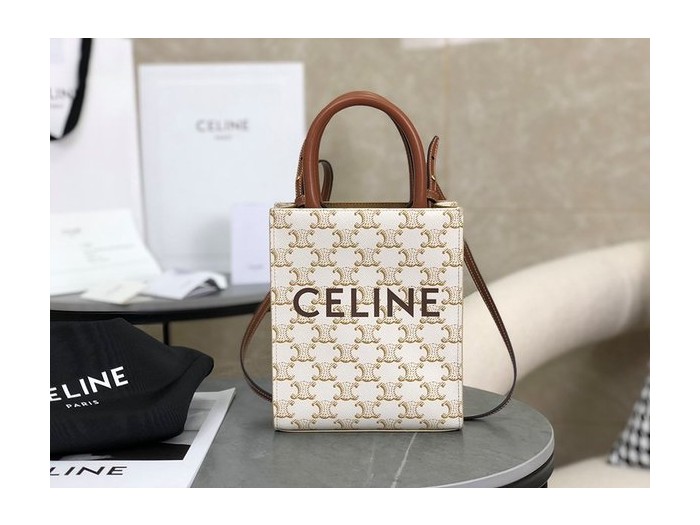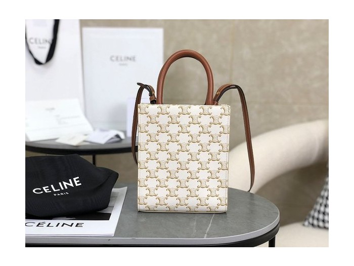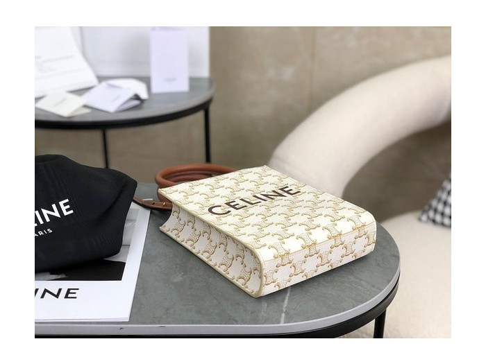 셀린느 미니 버티컬 카바스백 트리옹프 캔버스 & 카프스킨 화이트 [매장가 200만원대]