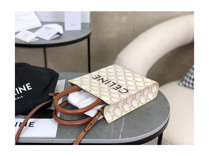 셀린느 미니 버티컬 카바스백 트리옹프 캔버스 & 카프스킨 화이트 [매장가 200만원대] > Celine