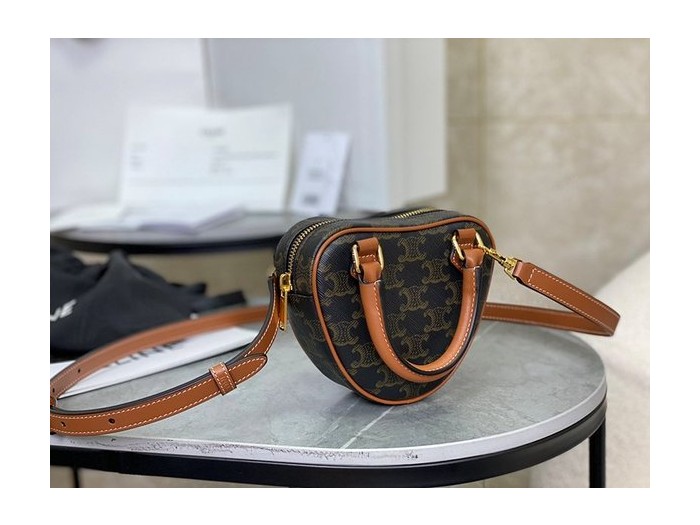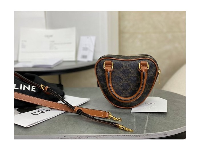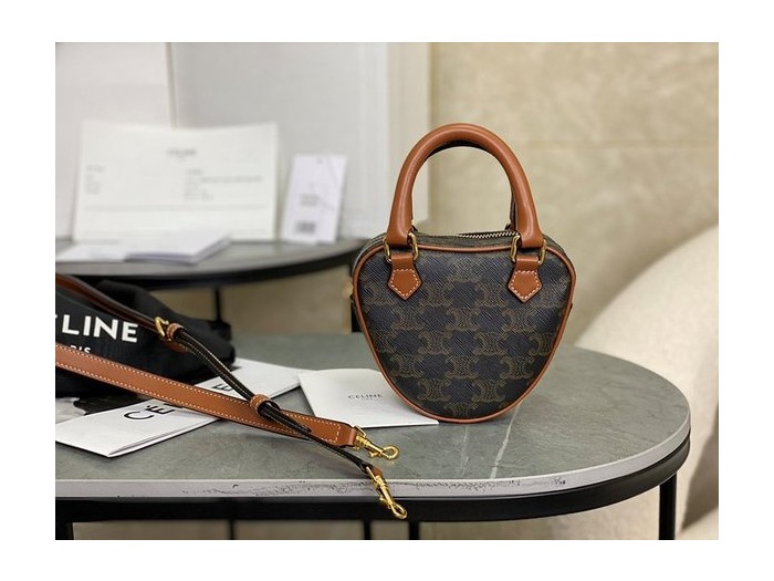 셀린느 미디엄 트리오페 하트백 트리옹프 캔버스 & 카프스킨 탠 [매장가 250만원대]