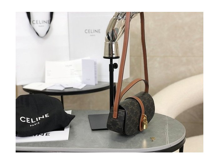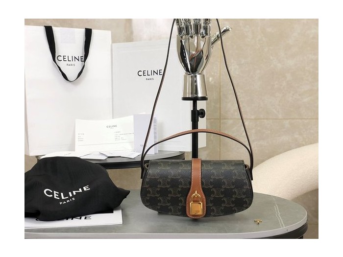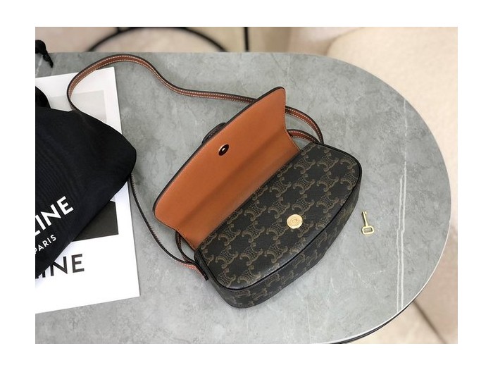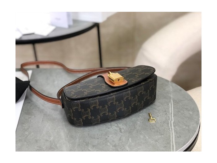셀린느 타부 스트랩 클러치 트리옹프 캔버스 & 카프스킨 탠 [매장가 200만원대]