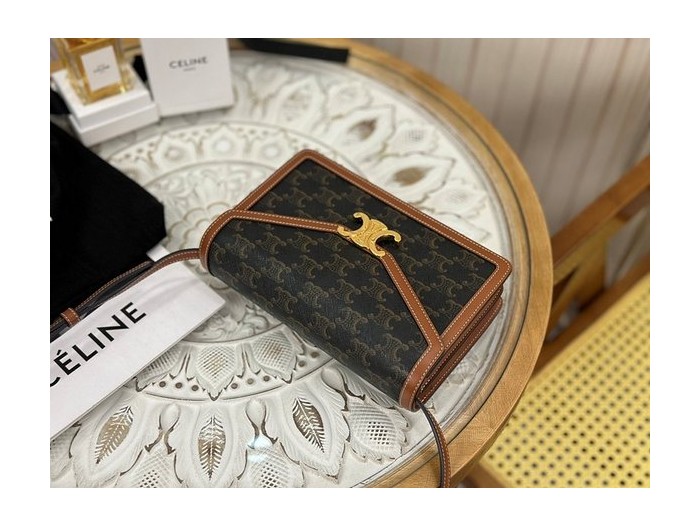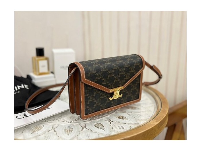 셀린느 엔벨롭 숄더백 트리오페 캔버스 & 카프스킨 탠 [매장가 350만원대]
