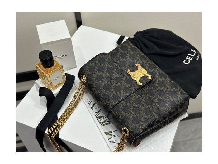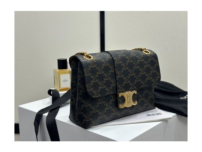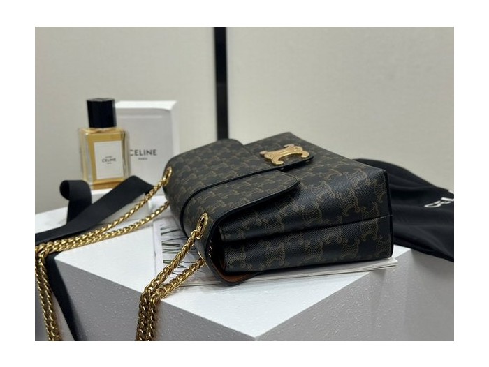 셀린느 미디엄 틴 빅투아르 체인 숄더백 트리옹프 캔버스 & 카프스킨 탠 [매장가 450만원대]