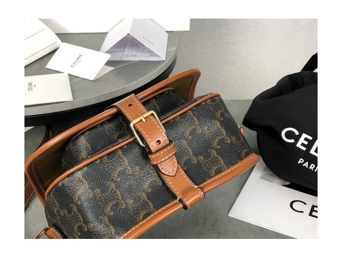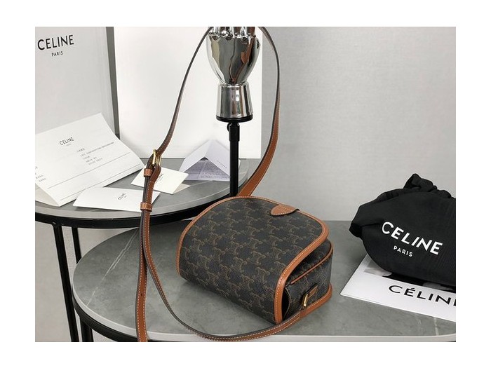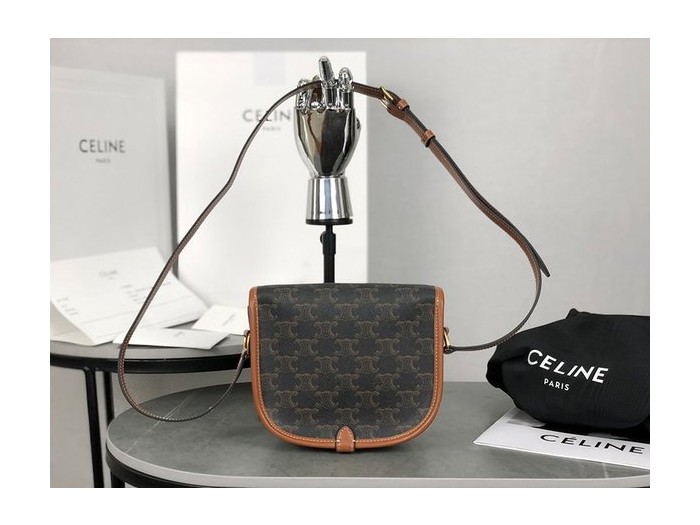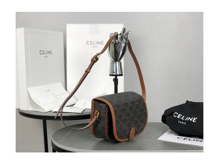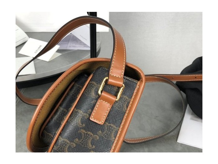 셀린느 미디엄 풀코백 트리옹프 캔버스 & 카프스킨 탠 [매장가 230만원대]