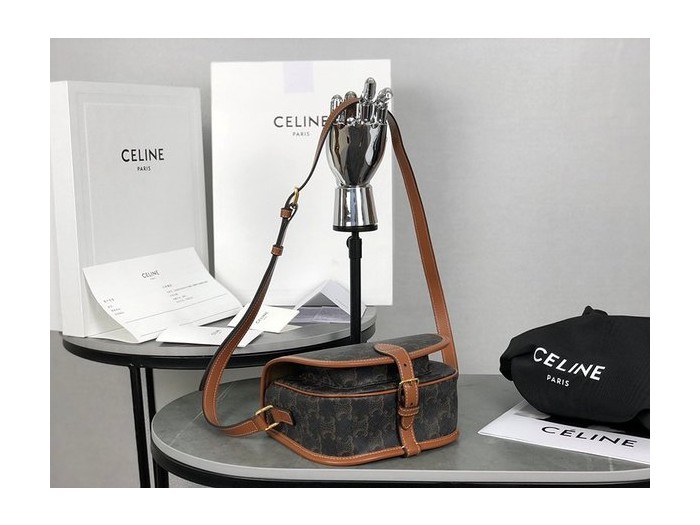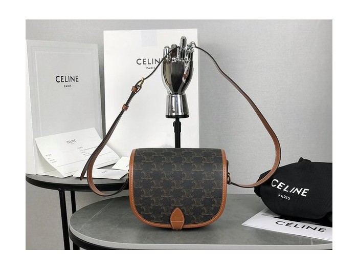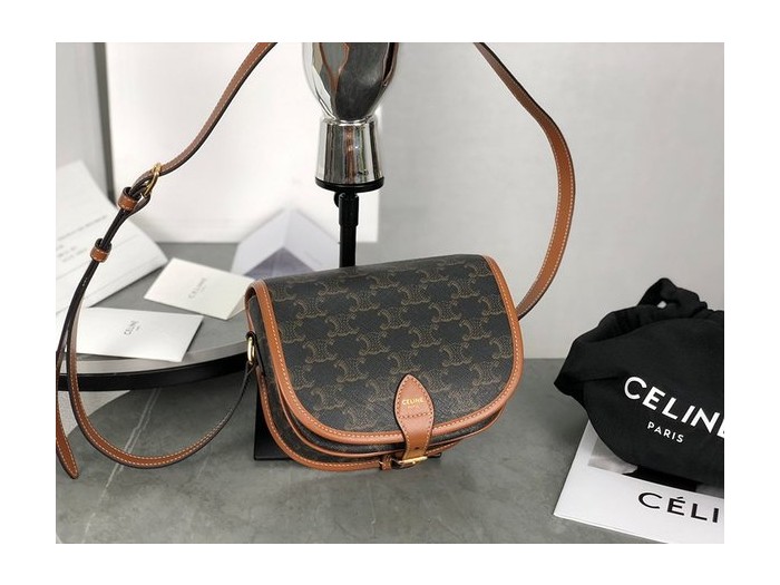 셀린느 미디엄 풀코백 트리옹프 캔버스 & 카프스킨 탠 [매장가 230만원대] > Celine