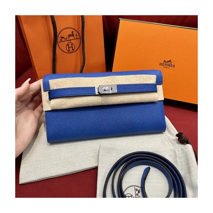 [하이엔드급] 에르메스 켈리 투고 크로스백 KELLY TOGO WOC / 7T 라이트블루 엡솜 은장 [매장가 1090만원대]