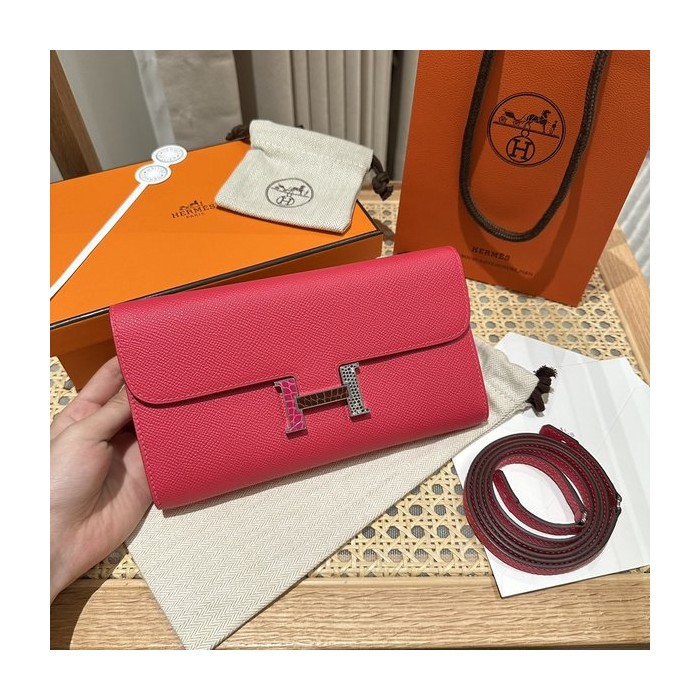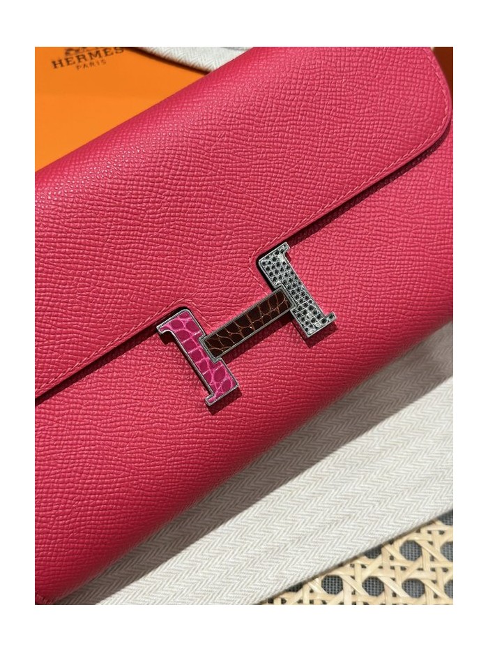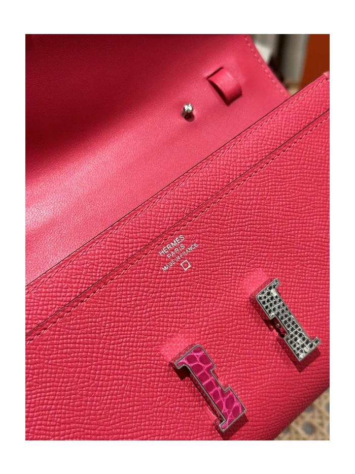 [하이엔드급] 에르메스 콘스탄스 투고 월렛 / I6 Rose extreme 리자드 악어 은장 [매장가 1290만원대]
