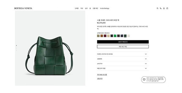 보테가베네타 스몰 카세트 크로스바디 버킷백 [매장가 197만원대]