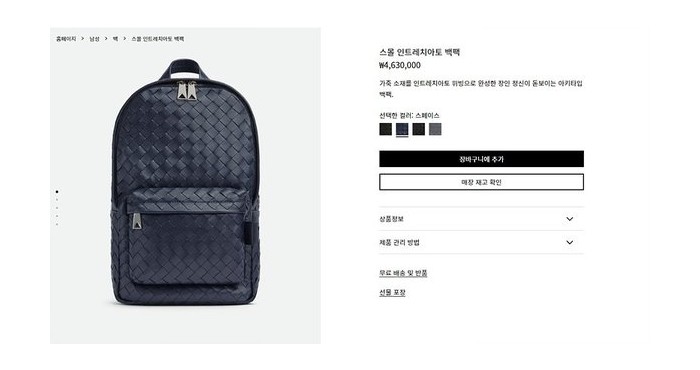 보테가베네타 스몰 인트레치아토 백팩 [매장가 463만원대]