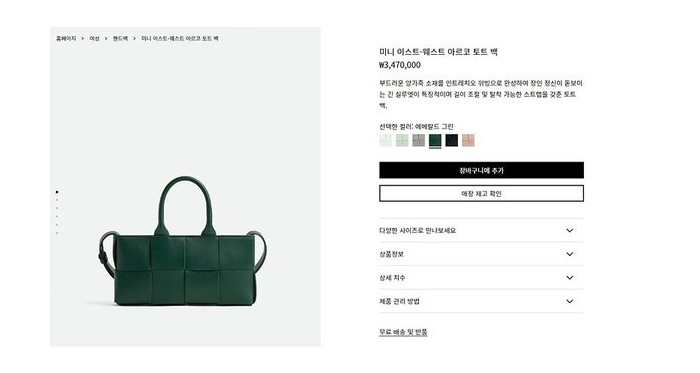 보테가베네타 미니 이스트-웨스트 아르코 토트백 [매장가 347만원대]